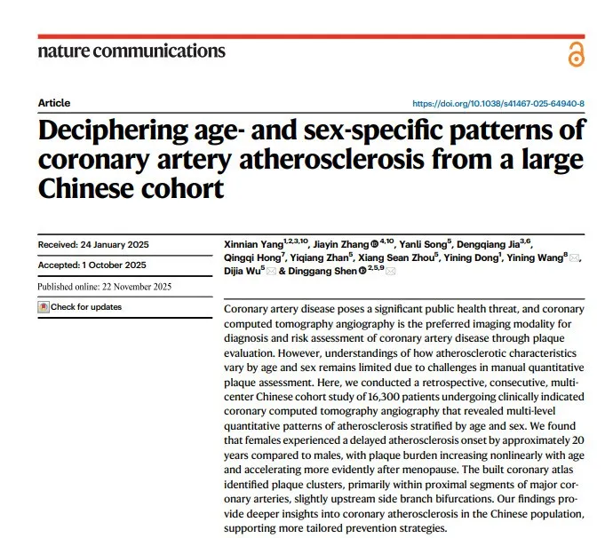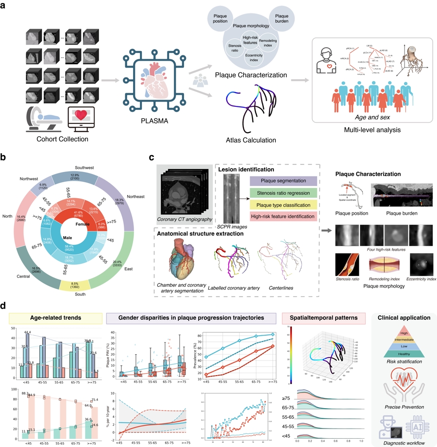 近日,联影智能与上海科技大学、香港城市大学、上海交大医学院附属第一东谈主民病院、北京协和病院等单元集中完成的中国东谈主群冠脉疾病大范围商榷恶果在《当然-通信》上发表。这项商榷基于中国多中心回归性邻接部队,纳入1.63万例经受冠状动脉野神思断层扫描血管造影(CCTA)查验的患者,同一联影智能CTA斑块智能分析系统,初次构建了冠脉斑块空间图谱,领略冠脉粥样硬化年事、性别特征,并对比中西方东谈主群,为我国休养战术优化提供了关节循证依据。